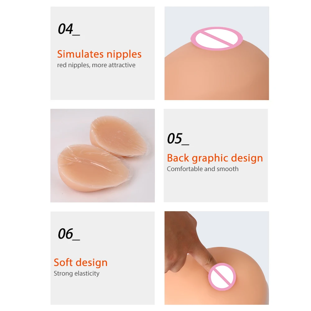 Material:100% silicone de grau médico, super macio, eles saltam como mama real e se sentem como mama real.